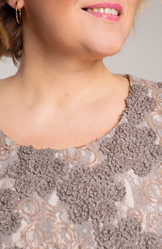 Czarująca i kobieca garsonka z odpinaną różą, jest idealną propozycją dla Pań szukających wyjątkowej i stylowej kreacji na duże uroczystości i wesela.