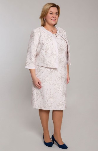 Ta czarująca i kobieca garsonka we wzór w róże, jest idealną propozycją dla Pań szukających wyjątkowej i stylowej kreacji na duże uroczystości i wesela.