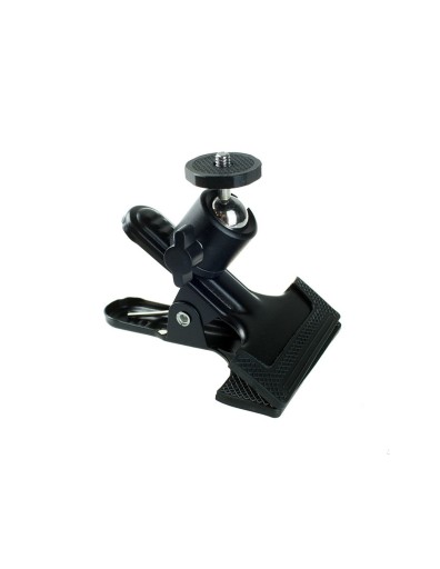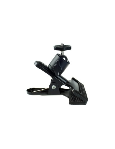 Wykonany z wysokiej jakości materiałów, gwarantujących trwałość na lata. Wykończony jest gumą, co zwiększa przyczepność, i sprawia, że nie rysuje powierzchni, do których jest przypięty. Siłę zacisku reguluje mocna sprężyna gwarantująca brak możliwości samoistnego odczepienia się uchwytu. Klip zakończone jest mini głowicą kulową z gwintem 1/4'', który pozwala na zamontowanie każdej kamerki sportowej, małego aparatu fotograficznego, oświetlenia itp.