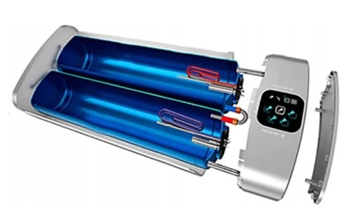 Technologia dwóch zasobników posiadających oddzielne grzałki umożliwia niezależne, naprzemienne podgrzewanie wody, dzięki czemu woda podgrzewa się o wiele szybciej niż w standardowym okrągłym podgrzewaczu.