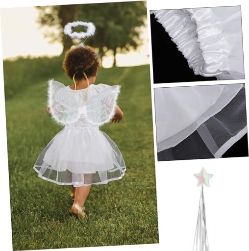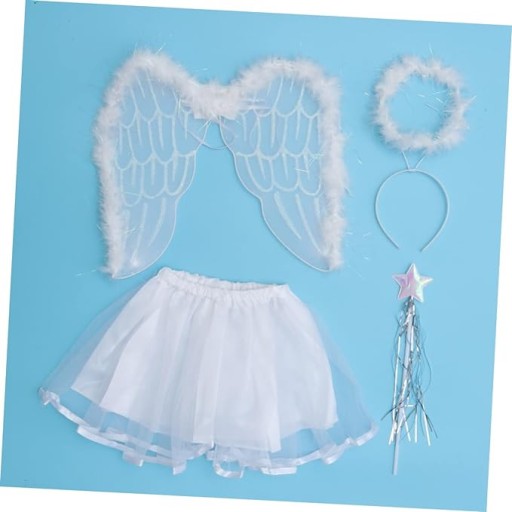 Strój aniołka składający się z 4 elementów - aureoli, skrzydeł, spódniczki oraz różdżki:
