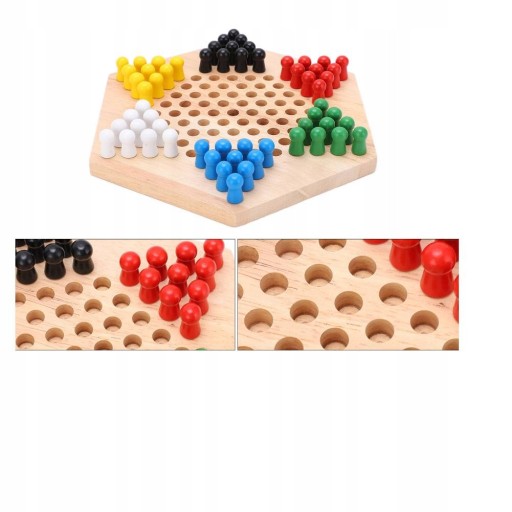 5. Te chińskie warcaby mają sześciościenną szachownicę i dziesięć pionków, z których każdy ma sześć różnych kolorów.