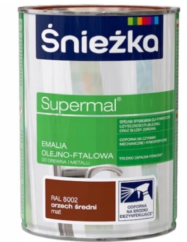SUPERMAL® Emalia olejno-ftalowa stosowana jest do dekoracyjno-ochronnego malowania drewna, materiałów drewnopochodnych, tynków oraz elementów stalowych i żeliwnych użytkowanych wewnątrz i na zewnątrz pomieszczeń, takich jak: okna, drzwi, meble, ogrodzenia, lamperie itp. Polecana do stosowania w pomieszczeniach mieszkalnych, przeznaczonych na stały pobyt chorych w budynkach służby zdrowia oraz przeznaczonych na stały pobyt dzieci i młodzieży w budynkach oświaty, a także w pomieszczeniach przeznaczonych do przechowywania produktów żywnościowych (bez bezpośredniego kontaktu z żywnością).