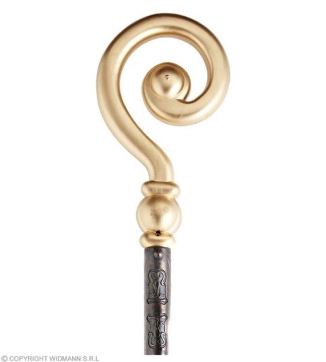 Pastorał świętego Mikołaja. Ciemnobrązowa, zdobiona rączka oraz pozłacana główka. Wykonany z tworzywa sztucznego. Lekki. Dwuczęściowy, łatwy w montażu.