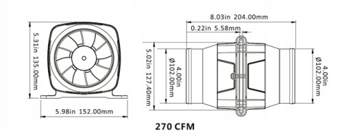 ЛИНЕЙНЫЙ ВЕНТИЛЯТОР 105 мм / МОТОРНОЕ ОТДЕЛЕНИЕ 12 В 7660 л/мин - SEAFLO
