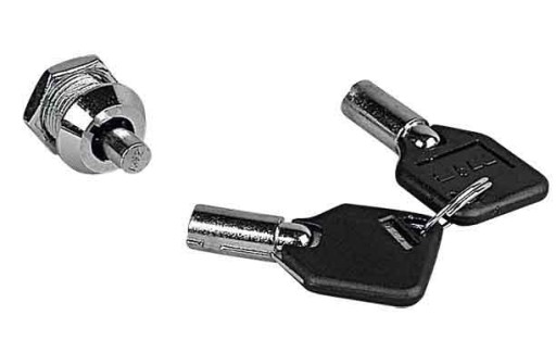 Zamek patentowy wciskany do zamknięć NUOVA RADE. W zestawie znajduje się zamek oraz dwa kluczyki.