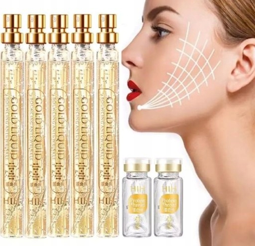Trulee Koreański zestaw do liftingu nitek proteinowych, złoty proteinowy peptyd Line Carving Essence Water-Soluble Collag-en, Lifting nici jedwabnych bez igieł, lifting nici kolagenowych