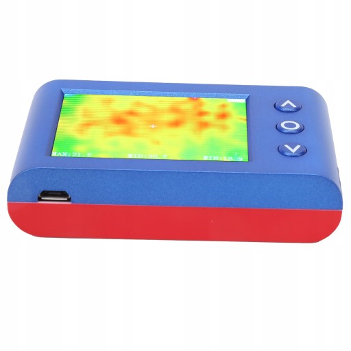 Specyfikacja: Typ artykułu: termometr na podczerwień Materiał: stop aluminium; Model: MLX90640 Użyj czujnika termowizyjnego na podczerwień MLX90640ESF-BAA Rozdzielczość: 32x24 Zakres pomiaru temperatury: -40 ℃ ~ 300 ℃ Dokładność pomiaru: ± 2 ℃ (obszar centralny, 0 ~ 100 ℃) Temperatura pracy: 10 ℃ ~ 50 ℃ Wilgotność pracy: ≤70% Częstotliwość odświeżania: 8 Hz Nie wymaga kalibracji Pole widzenia czujnika: 55 ° x 35 ° Emisyjność: 0,1 ~ 0,99 regulowana Wyświetl punkt centralny, najwyższą i najniższą temperaturę Funkcja aparatu (wbudowana pamięć, możesz zrobić 100 zdjęć, bez pomocy innych narzędzi, kabel danych Micro USB jest bezpośrednio podłączony do komputera, a komputer może przeglądać, kopiować i usuwać zdjęcia) Dwa tryby kolorów: żelazna czerwień i tęcza Wbudowany akumulator (może być używany przez około 4 godziny po pełnym naładowaniu, pełne naładowanie zajmuje około 1,5 godziny) Rozmiar ekranu: 2,4 cala (rozdzielczość wyświetlacza: 320x240) Model baterii: bateria litowa Pojemność baterii: 2000 mAh
