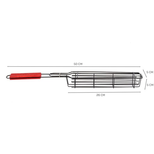 Koszyki wykonane z grubego drutu 3mm powlekanego proszkowo powłoką nieprzywierającą. Drewniana rączka chroni przed poparzeniem i ułatwia obracanie aby opiec zawartość ze wszystkich stron równomiernie.