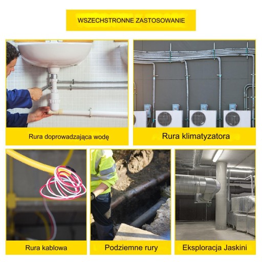 Kamera kanalizacyjna ze światłem jest idealna do inspekcji rur wodociągowych, rur klimatyzacyjnych, rur kablowych, systemów próżniowych rurociągów, przemysłu ołowiowego, budynków, rur podziemnych, prac ratowniczych, eksploracji jaskiń itp.