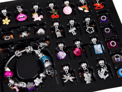 Zestaw w całości wykonany w srebrnym kolorze z kolorowymi koralikami i zawieszkami. Samodzielnie stworzona bransoletka lub naszyjnik będzie najcenniejsza i najpiękniejsza. Z koralików możesz zrobić wspaniały i niepowtarzalny prezent dla siebie, mamy lub najlepszej przyjaciółki.