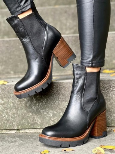Skórzane botki damskie Oleksy to idealne połączenie stylu i wygody dla każdej kobiety. Czarne botki damskie skórzane poza świetnym wyglądem cechuje również ponadczasowość.