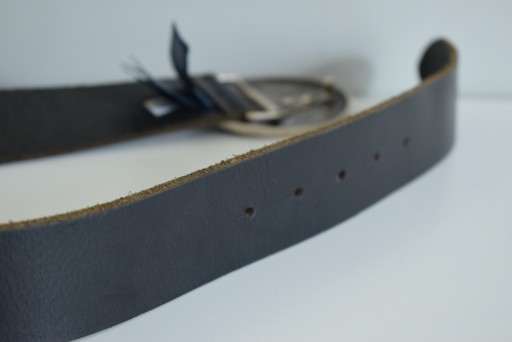 Pasek skórzany renomowanej firmy. Stan bardzo dobry (po otworach na bolec można sądzić że jest nieużywany, lekkie ślady magazynowania), jak na zdjęciach. Grubsza, porządna skóra naturalna. Pasek jest bez szlufki. Metalowa klamra.