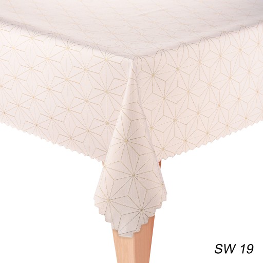 Elegancki obrus plamoodporny na różne okazje, w świetnej kolorystyce i nowoczesnych wzorach. Bardzo staranie wykonany. Tkanina dodatkowo jest wzbogacona powłoką plamoodporną (teflon). Tego typu apretura nie pozwala na wchłanianie płynów we włókna tkaniny, co pozwala uchronić obrus przed uciążliwymi plamami. Obrus pakowany jest w torebkę foliową z etykietą.