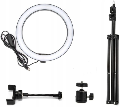 Wysoko-watowa lampa pierścieniowa LED z obrotowym statywem i możliwością dostosowania światła o różnej barwie, idealnie doświetla szczegóły twarzy. Świetna do robienia zdjęć produktowych, portretów i makrofotografii; sprawdzi się również podczas wykonywania makijażu. Lampa posiada obrotową głowicę oraz obrotowy (360°) uchwyt na telefon. Urządzenie nadaje się zarówno do użytku domowego, jak i profesjonalnego – w studiach zdjęciowych i salonach kosmetycznych.