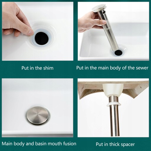 5. Stal nierdzewna 304: Części odpływu umywalki łazienkowej wykonane są ze stali nierdzewnej 304, dzięki czemu są odporne na zużycie, trwałe, wytrzymałe i mają długą żywotność.