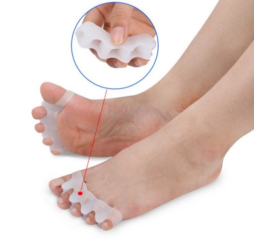 ✅ Silikonowy klin pomiędzy paluchem a resztą palców stopy, pozwala skorygować skrzywienie palucha, prostując go w stronę zewnętrzną stopy