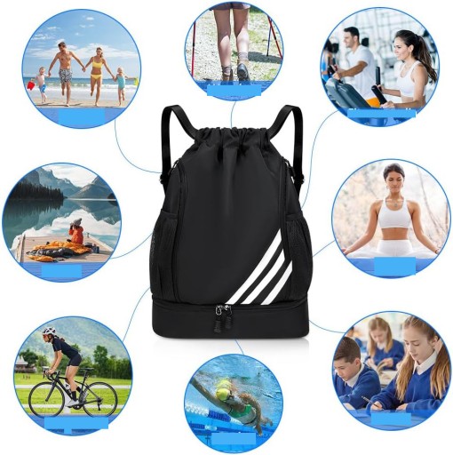 ✅ 【Konstrukcja z wieloma kieszeniami】: boczne kieszenie z siatki z elastycznymi paskami po obu stronach plecaka torby sportowej mogą pomieścić butelki z wodą, parasole; przednia kieszeń do przechowywania chusteczek higienicznych i przyborów toaletowych; spód to niezależna komora na buty; W kieszeni ze sznurka znajduje się również dodatkowa wewnętrzna kieszeń na suwak, która jest wystarczająco duża, aby pomieścić małe kosztowności, takie jak zegarki sportowe, portfele itp., aby uniknąć kieszonkowców.