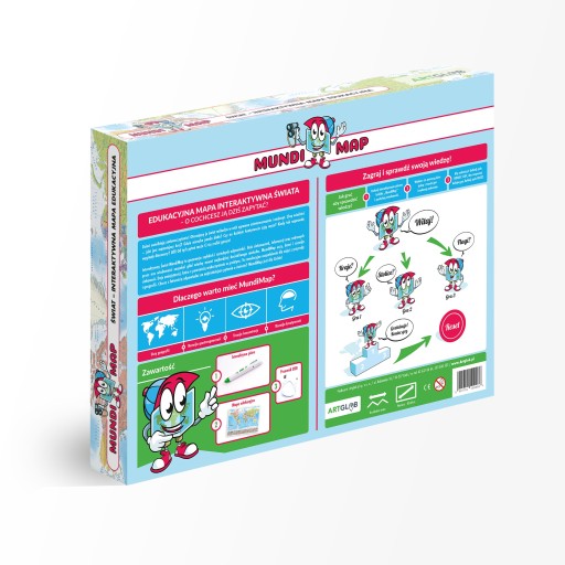 MundiMap to interaktywna mapa świata, która doskonale sprawdzi się jako edukacyjne narzędzie dla najmłodszych! Mapa ta umożliwi Twojemu dziecku zapoznanie się z otaczającym światem, usprawni naukę geografii i wiedzy o społeczeństwie różnych państw, a równocześnie zapewni wiele rozrywki! Z mapy MundiMap mogą korzystać dzieci już od 5 roku życia, dzięki czemu od najmłodszych lat mogą uczyć się poprzez zabawę i czerpać radość z przyswajania wiedzy.