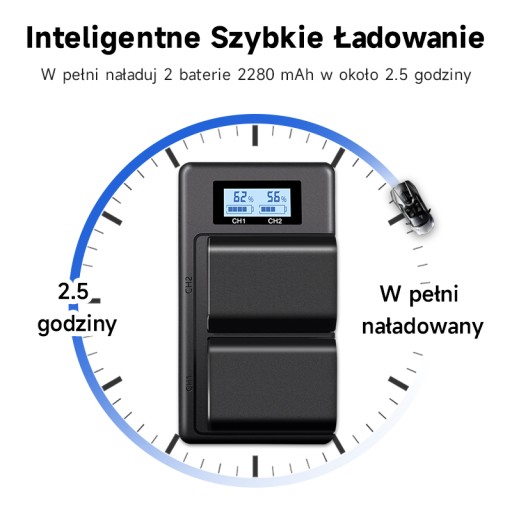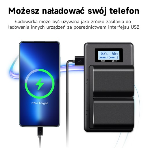 Ładowarka z ekranem LCD może pokazywać stan baterii.