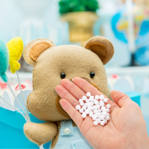 Te cząsteczki pianki są idealne do wypełniania poduszek w kształcie litery U, puf, lalek itp
