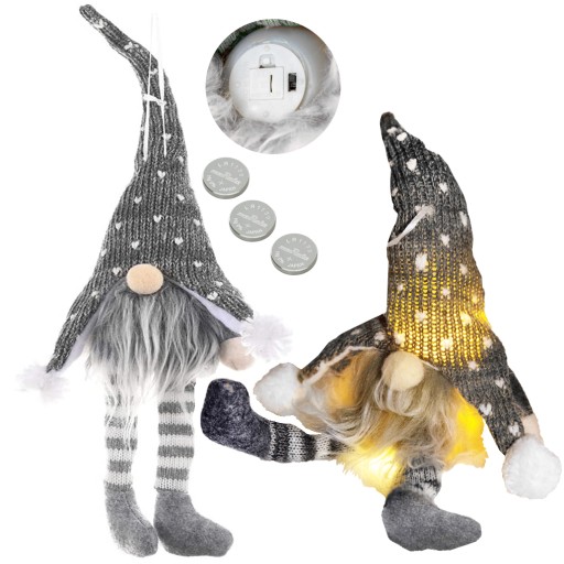 Skrzat krasnal świąteczny świecący 30 cm gnom LED ozdoba prezent na święta
