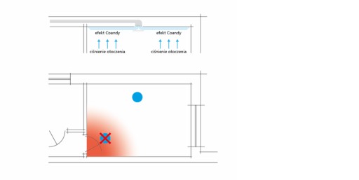 Konstrukcja zaworów SMILEY z osłonami umożliwia efektywne wykorzystanie efektu Coandy w przypadku nawiewów (rozprowadzanie nawiewanego powietrza po całym suficie, co umożliwia swobodę wyboru miejsca instalacji nawiewu).