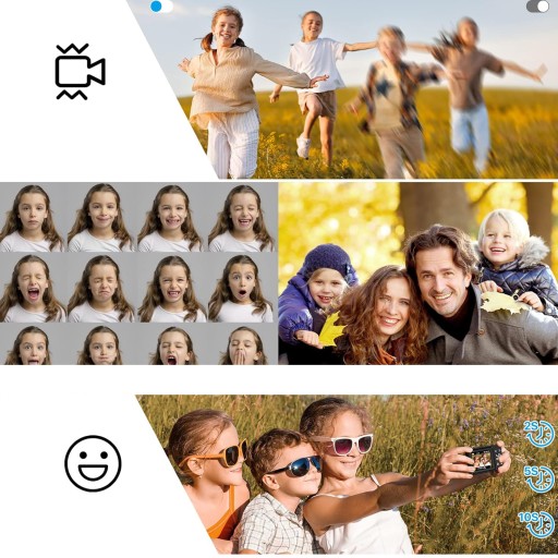 - 📸-Z funkcją zapobiegającą drganiom, wykrywaniem twarzy, wykrywaniem uśmiechu, fotografowaniem ciągłym, fotografowaniem z timerem i wyłączaniem timera.