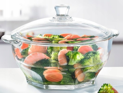 Wykonana jest ze szkła sodowego oraz hartowanego, co czyni ją znakomitą do serwowania potraw zarówno gorących jak i zimnych. Przezroczystość wazy sprawia, iż prezentowane wszelkiego rodzaju sałatki wyglądają w niej smakowicie i bardzo apetycznie.Naczynie można myć w zmywarce i używać w kuchence mikrofalowej.