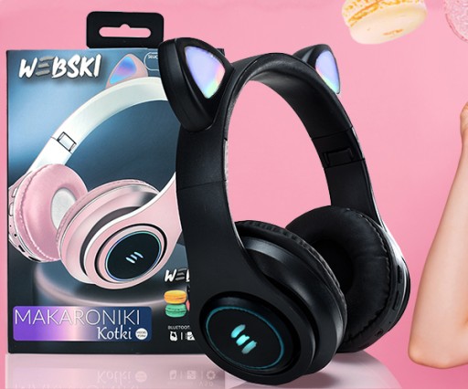 🥽 GOGLE VR + 🎧 Bezprzewodowe słuchawki nauszne stereo Ledowe Kocie Uszy Bluetooth