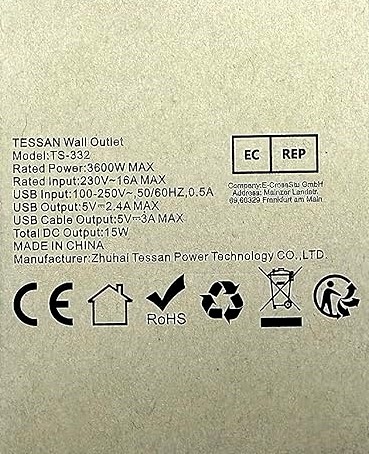 Gniazdko Dystrybucyjne 3w1: Maks. Moc do 3600 watów (Maks. 230V, 16 A). Podwójne złącze USB z wbudowanymi inteligentnymi układami scalonymi. Może automatycznie wykryć Twoje urządzenie i rozdzielić moc. Ta wtyczka dystrybucyjna jest kompatybilna z różnymi urządzeniami. Takich jak smartfony, laptopy, routery, telewizory, drukarki.