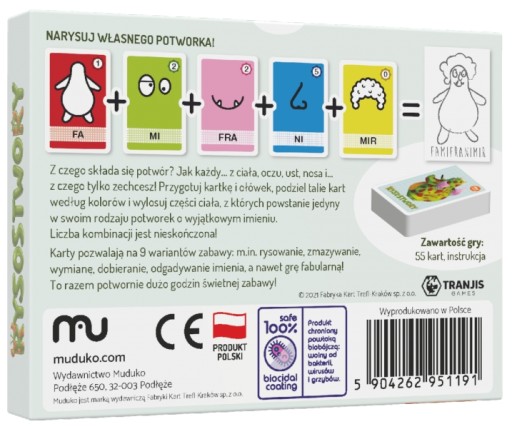 Każda karta zawiera również sylaby, z których można złożyć przedziwne imiona. Kolejkę wygrywa gracz, którego potwór sieje największy postrach wśród pozostałych osób. Doskonałą zabawę i brak nudy gwarantują również inne warianty gry. Pozwalają one między innymi na stworzenie niewidzialnych potworów lub całego ich stada.