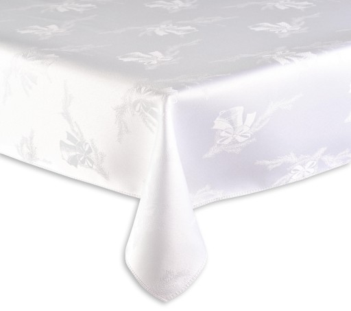 OBRUS PLAMOODPORNY - BIAŁY - ŚWIĄTECZNY W DZWONKI - 140x200