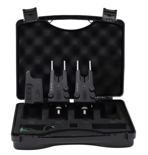 M-Bite to najwyższej klasy sygnalizatory karpiowe dostępne w komplecie z bezprzewodową centralką. Wyposażone w unikalny system sygnalizacji wizualnej, za pomocą podświetlanego logo na przodzie obudowy i płynnie działającą linijkę diod LED. M-Bite’y posiadają 6stopniową regulację głośności, czułości oraz tonu za pomocą praktycznych pokręteł, wyjście na podświetlany swinger oraz wkręcane snag earsy. Wraz z centralką zapewniają bezprzewodową transmisję sygnału 1:1 oraz całkiem imponujący zasięg do około 200m.