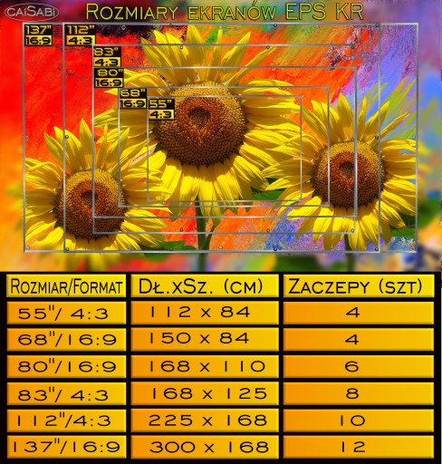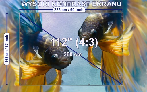 Zapraszamy Państwa do zakupu EKRANU PROJEKCYJNEGO EPS 112X KR format 4:3 HD. Ekran produkowany jest w Polsce z wysokiej jakości, gęstej tkaniny akrylowo poliestrowej. Zastosowany splot eliminuje refleksy oraz zapewnia duży kontrast, jasność i kąt widzenia obrazu. Oferujemy sześć rozmiarów; 55 cali, 68 cali, 80 cali, 83 cale, 112 cale i 137 cale. Na tej aukcji ekran ma przekątną 112” (wyświetlany rozmiar obrazu 225 cm x 168 cm).