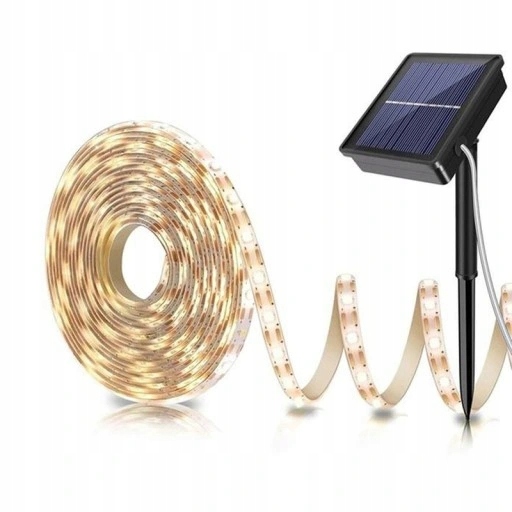 SOLARNA TAŚMA LED SMD WODOODPORNA 5M BIAŁY CIEPŁYOpis:Typ: słoneczna taśma LEDTyp diody LED: 2835Długość: 5MIlość diod: 30 LED/mLumenów: pojedynczy koralik świetlny 14LMMateriał: plastik, silikon, części elektroniczneZasilanie: słoneczneKolor światła: ciepłe światłoWodoodporność: IP65Pakiet zawiera:1 * SOLARNA TAŚMA LEDDziała automatycznie i ciepła biała dekoracjaTa zasilana energią słoneczną taśma LED działa automatycznie bez prądu, ponieważ panel słoneczny pochłania promienie słoneczne i generuje moc światła. 2835 # diod LED, które zapewniają doskonałe, ciepłe, białe oświetlenie i zamieniają ciemną przestrzeń w ozdobnie oświetloną przestrzeń.8 trybów oświetleniaWspaniałe tryby oświetlenia, w tym kombinacja, błysk świetlików, fale, zanikanie, markiza, powolne zanikanie, migotanie namiotu, stały. Idealny do dekoracji ogrodów, patio, bramy, podwórka, wesela, przedpokoju, balkonu, przyjęcia itp.Wysokiej jakości i elastyczne oświetlenie na taśmieWykonane z elastycznych lampek na taśmie, zwinięte z nawijakiem szpulki, aby uniknąć bałaganu. Wykonane z elastycznych lampek na pasek, zwinięte z nawijakiem szpulki, aby uniknąć bałaganu. Niskie napięcie jest łatwe do przechowywania energii słonecznej i gotowe na noc lekki. Ponadto jest przyjazny dla środowiska, ma wysoki współczynnik konwersji energii, jest trwały i bezpieczny w użyciu.Wodoodporny IP65Listwa świetlna i panel słoneczny są wodoszczelne IP65, nawet w deszczowy dzień nadal można zobaczyć romantyczne światło wirujące z oka.Łatwy w montażuZ tyłu lepkich lampek znajduje się taśma samoprzylepna, która umożliwia łatwą instalację i obsługę. Panel słoneczny z taśm słonecznych jest bardzo wydajny, jest w pełni naładowany 4-6 godzin w silnym świetle słonecznym, może pracować do 12 godzin po pełnym naładowaniu.
