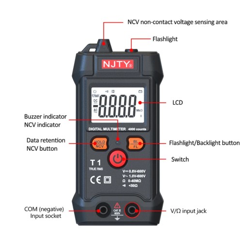 Цифровой мультиметр NCV 600 В T1 Мини Портативный тестер напряжения с автоматическим диапазоном переменного тока D