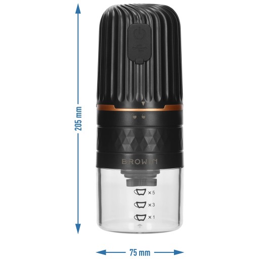 - Bezpieczna i wydajna praca młynka bez konieczności częstego ładowania baterii - zapewnia to m.in. wytrzymała bateria o dużej pojemności oraz szczelna silikonowa nakładka z przyciskiem włącznika, osłaniająca wejście USB.