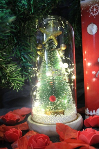 ВЕЧНАЯ РОЖДЕСТВЕНСКАЯ ЕЛКА В СТЕКЛЕ LED КАК РОЗА, САНТА, ЗВЕЗДА, ПОДАРОК LED