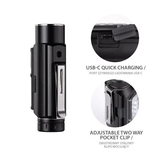 Latarka RovyVon Angel Eyes E700u Black Czarna 2800 Lumenów Multifunkcyjna: Światło Boczne UV