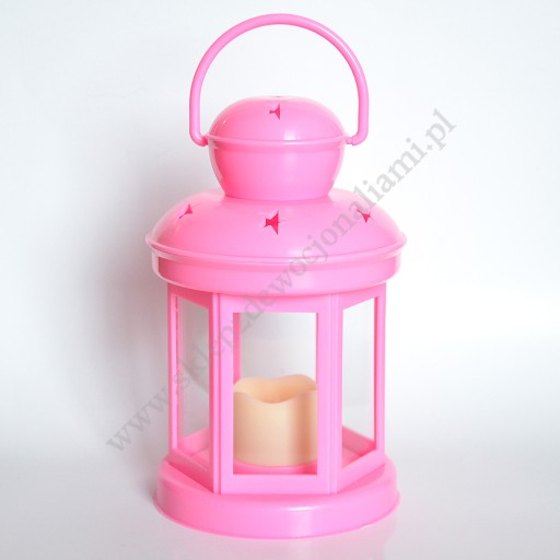 Lampion wykonany z tworzywa sztucznego z oświetleniem na baterię doskonale imitującym palącą się świecę (w zestawie baterie). Wysokość lampionu 16 cm (z uchwytem 19 cm), średnica lampionu 9.7 cm.