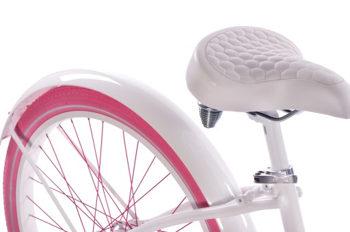 - Wykorzystane kolory - biały, róż. Opony w kolorze różowym, chwyty i siodło w kolorze białym.