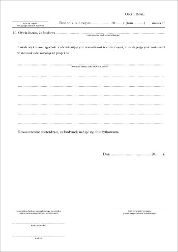 Dziennik budowy A4 30 kartek oryginał + kopia