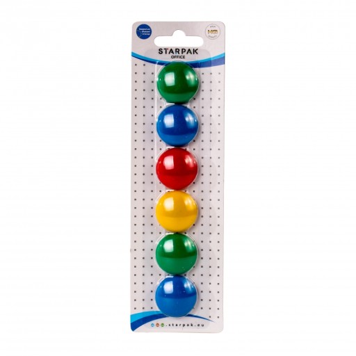 WYPUKŁE MAGNESY 29mm mix KOLORÓW zestaw 6 sztuk STARPAK magnesy na LODÓWKĘ