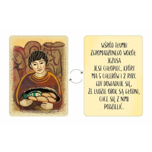 Czy uda ci się zapełnić wszystkie tabliczki obrazkami? A może wybierzesz trudniejszy wariant gry i będziesz tym, który najszybciej odnajdzie kartę przedstawiającą czytany fragment biblijnej opowieści?