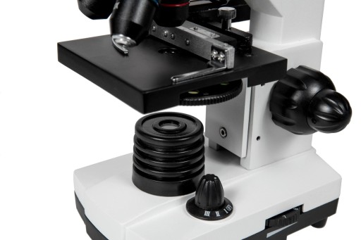 Mikroskop został wyposażony we współosiową śrubę makro- i mikrometryczną zapewniającą niezwykle precyzyjne i wygodne ustawianie ostrości.