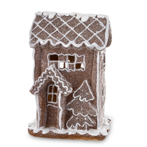 - Świąteczny domek z piernika opruszony brokatowym śniegiem
