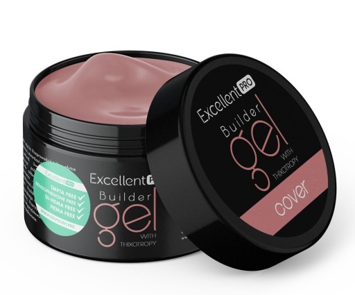 EXCELLENT PRO BUILDER GEL WITH THIXOTROPY to jednofazowy, wielofunkcyjny żel z tiksotropią stworzony z myślą o salonowym, profesjonalnym użytku w jasnoróżowym, mlecznym kolorze. Dzięki "pamięci cieczy" praca żelem jest łatwa i przyjemna, ponieważ żel nie zalewa skórek, jednocześnie dobrze się poziomując. Nadaje się do długich przedłużeń na tipsie oraz szablonie a także do utwardzania naturalnej płytki. Jego twardość po utwardzeniu powoduje, że jest szczególnie dedykowany do salonowych, długich przedłużeń, a także do stylizacji awangardowych. Żel posiada strukturę molekuł linearną, a jego doskonale dobrane konsystencja, lepkość i gęstość żelu wpływają na jakość pracy. Nowoczesna formuła stworzona została tak, by umożliwić zastosowanie techniki „żel bez piłowania”, zabezpieczyć tunel przedłużonych paznokci przed rozprężeniem i skrócić czas wykonania usługi do minimum. Szczególnie polecany do szybkich uzupełnień i korekt stylizacji.