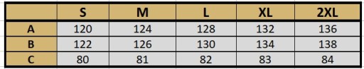 Produkty mierzymy na płasko, po zewnętrznej stronie, zapięte na guziki (zamek). Aby wybrać najodpowiedniejszy rozmiar zmierz podobne ubranie ze swojej szafy i porównaj jego wymiary z tabelą rozmiarów danego produktu. Wymiary podane w tabeli mogą różnić się od wymiarów rzeczywistych produktu +/- 2cm.