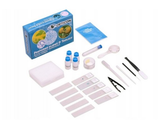 Dopełnieniem zestawu jest najnowszy produkt marki Opticon – specjalistyczny zestaw narzędzi laboratoryjnych. W przepięknym pudełku znajdą Państwo 5 w pełni gotowych do obserwacji preparatów oraz zestaw szkiełek i specjalistycznych narzędzi do tworzenia własnych preparatów.